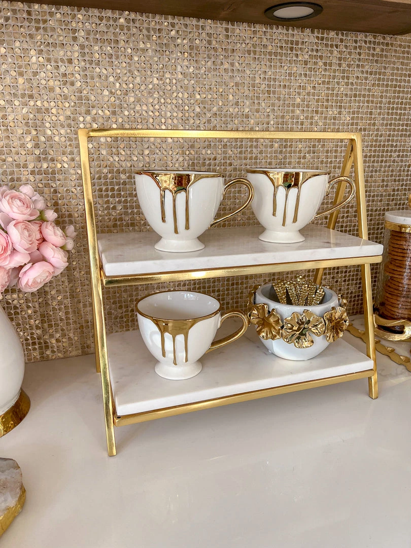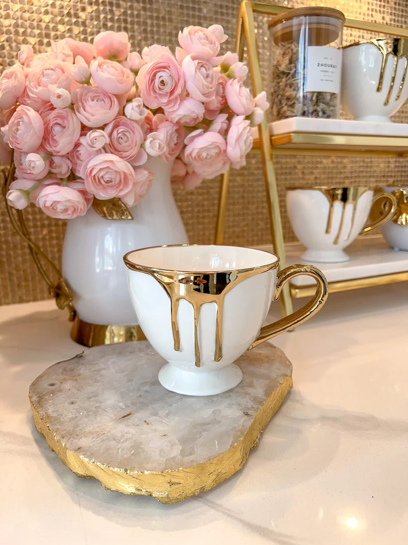 Description: You can’t go wrong with the classic look of gold and white. Treat yourself and your guests to this elegant coffee mug with gold drip details.