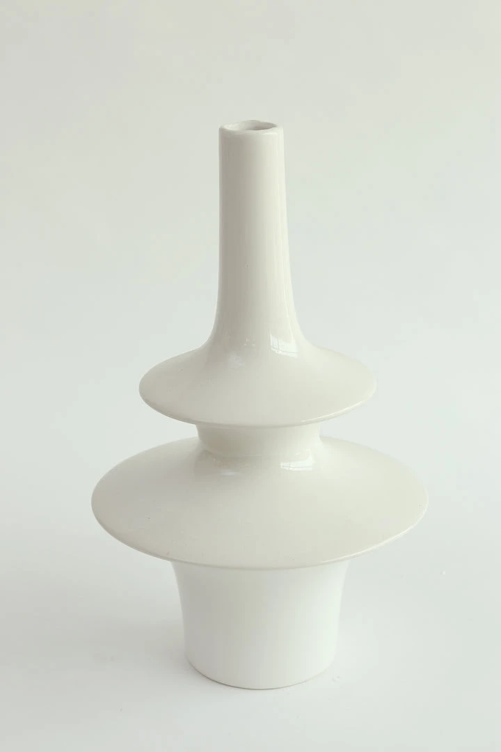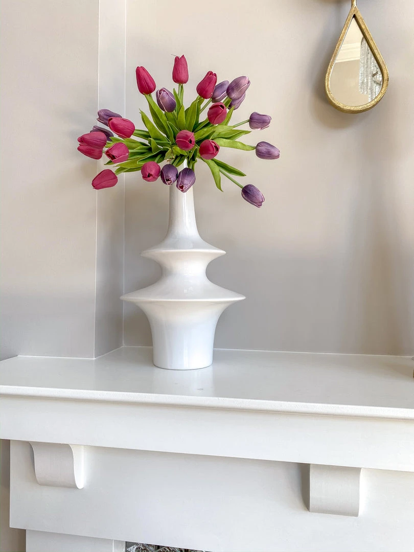 This abstract vase has a very cool and interesting shape that we love! Style it with your favorite faux floral for a lovely look.