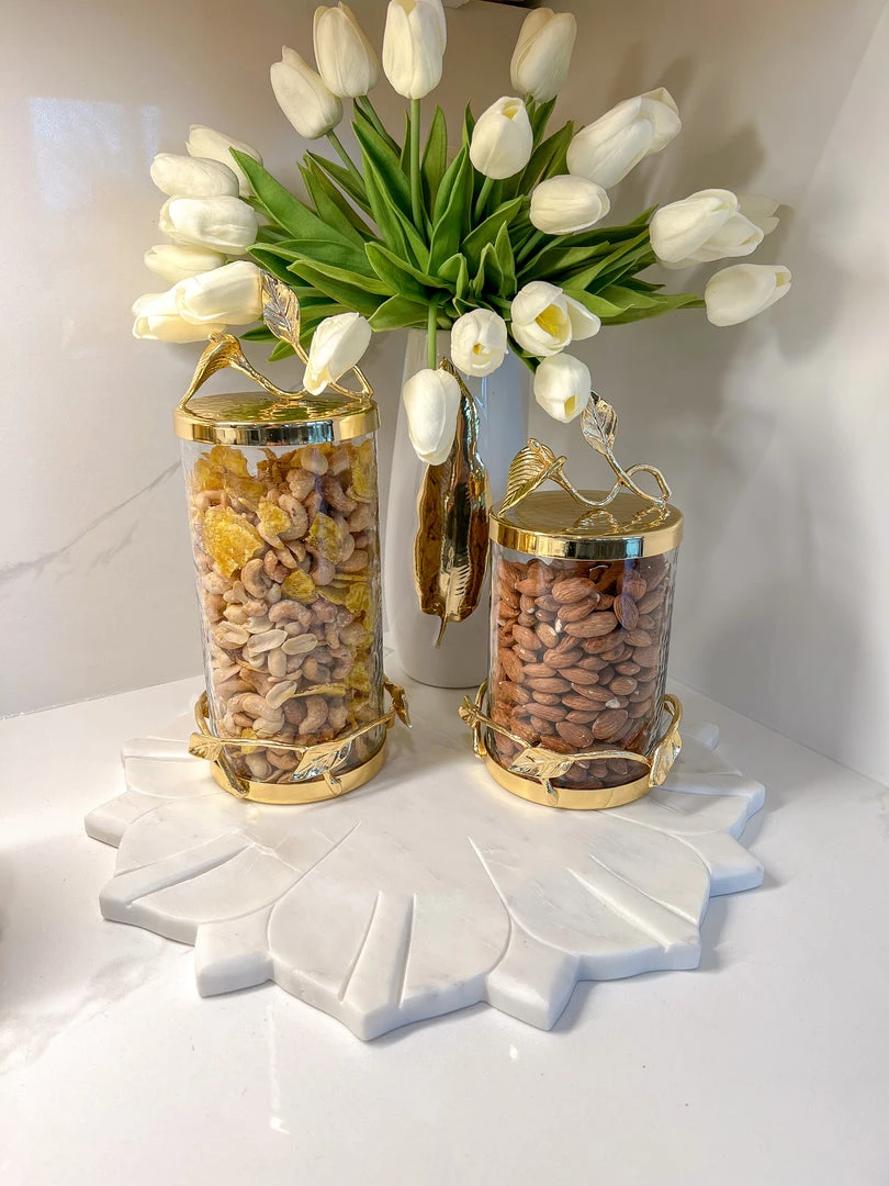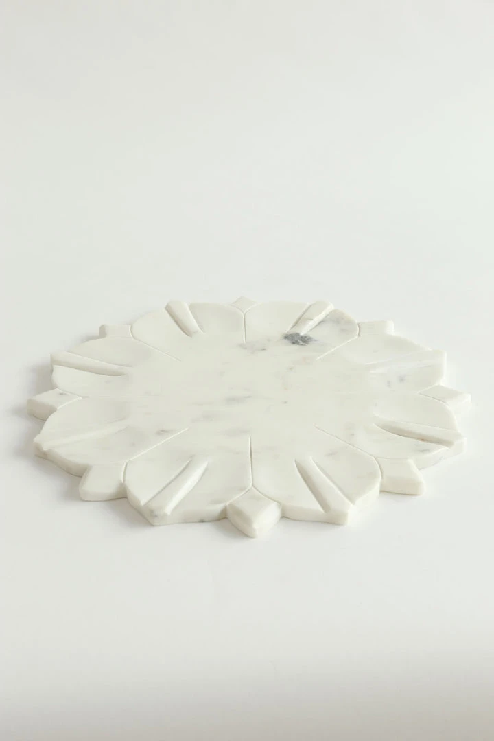 Description: This beautiful lotus marble tray is a base for your home decor! The stylized edges and unique lotus shape make this a one-of-a-kind piece!