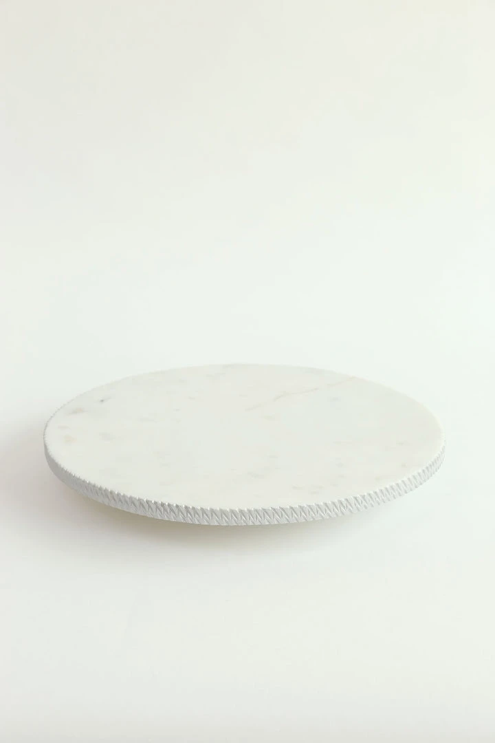Inspire Me! Home Decor White Marble Round Lazy Susan W/ Silver Textured Edge