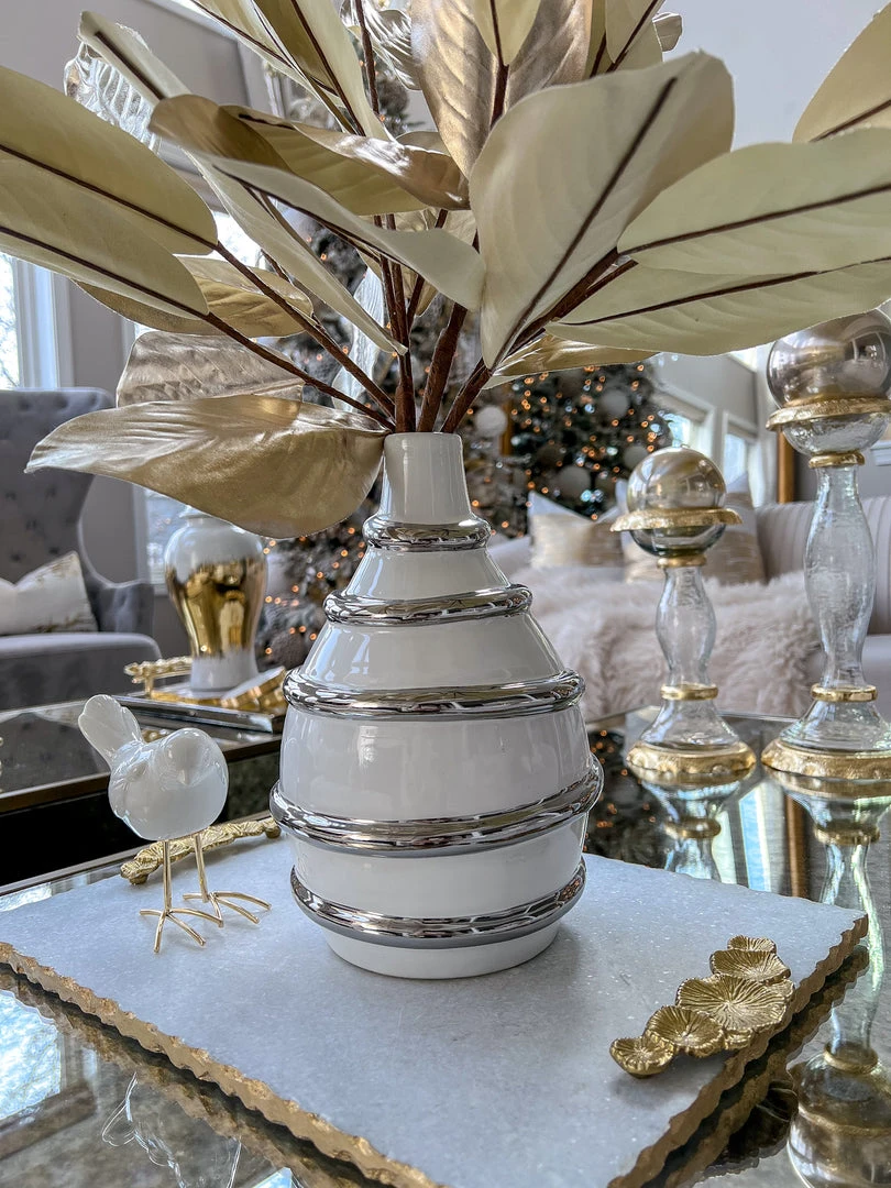 Description: This is a gorgeous vase with a beautiful striped design and will make a statement wherever you display it!